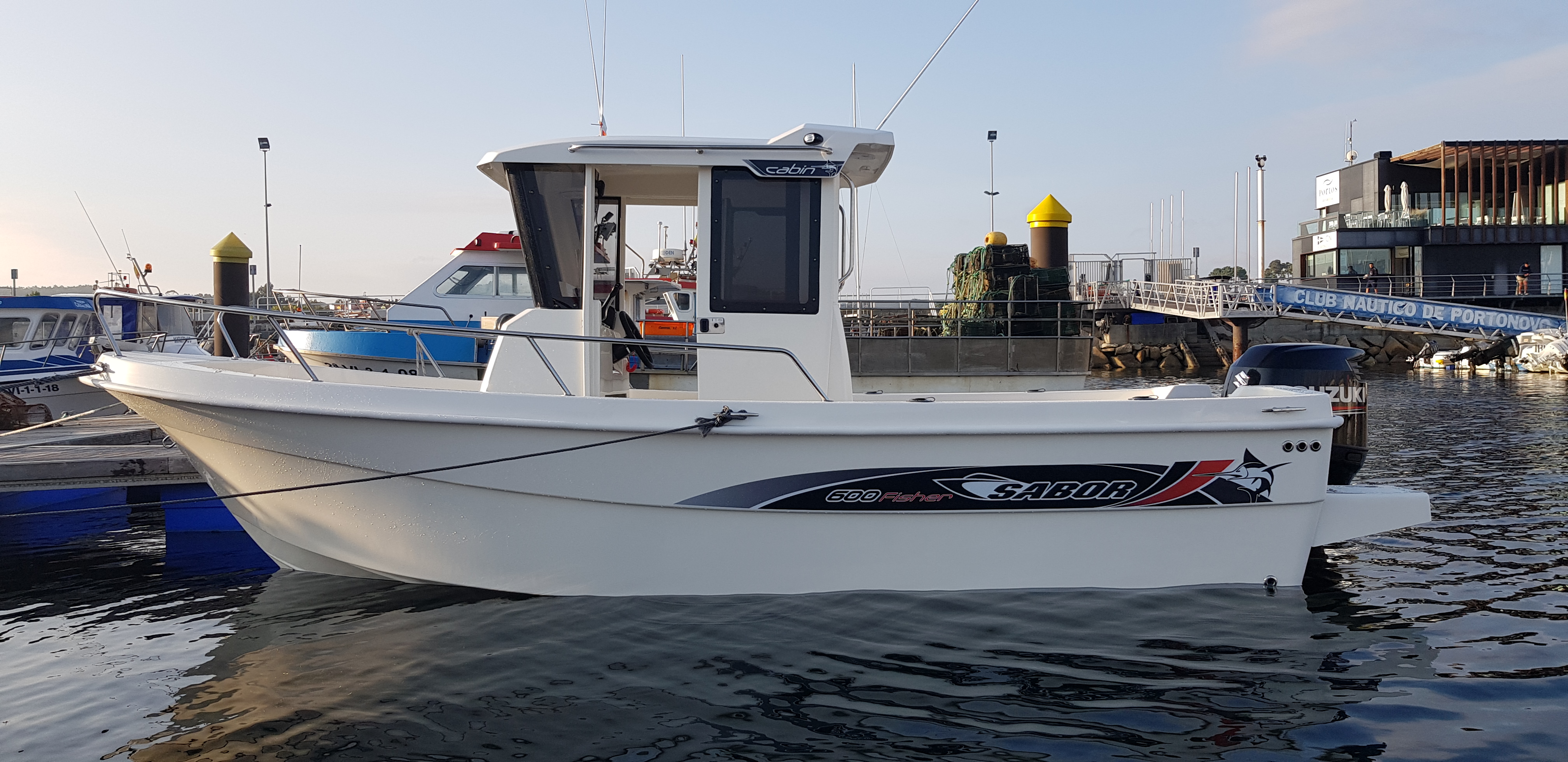 Pour les pecheurs modernes... Des allers/retours sur vos lieux de pehes, en securite , le plus vite possible, tout en ayant un bateau attrayant et confortable, c'est le role du Sabor 600 cabine. La qualite de son architecture marine, le dessin de pont de type "chalutier traditionnel", sa robustesse de construction, font du Sabor 600 cabin : le meilleur "fishing" du moment...